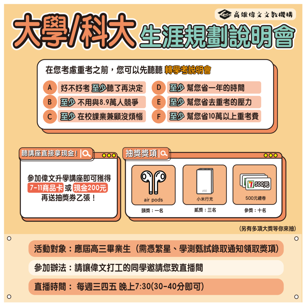 人生不是只有一個選擇 你不是只能重考 找一條更舒服的路 所謂的成功不是找捷徑 而是用最小的阻力 獲得最大的成功 你可以讓你的生活更繽紛