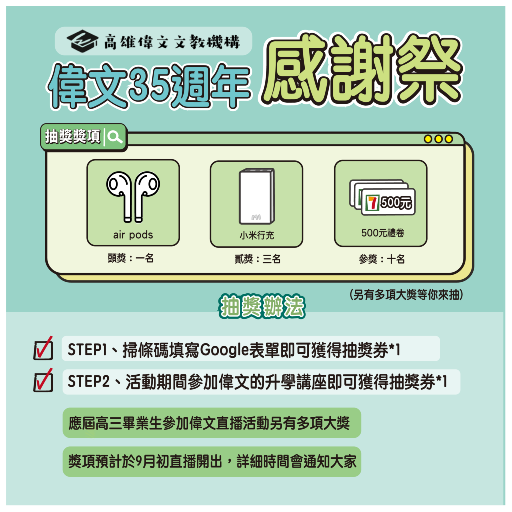 現在填寫表單 應屆高三畢業生來抽Air Pods!